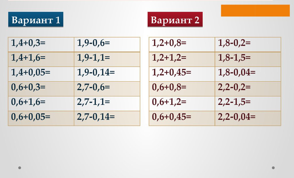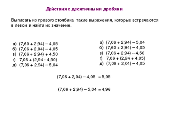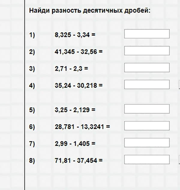 Вычитание десятичных дробей в столбик